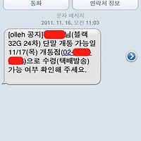 오늘 오전 아이폰4S가 예약했던 올레지점으로 도착해 개통해 주겠다고 연락이 왔습니다.