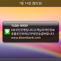 KB국민은행을 사칭하여 위와 같이 개인정보 유출방지를 위한 보안강화서비스 등록을 하라는 문자메시지에 당하는 사례가 요즘 많이 있었습니다.