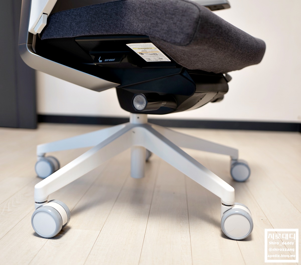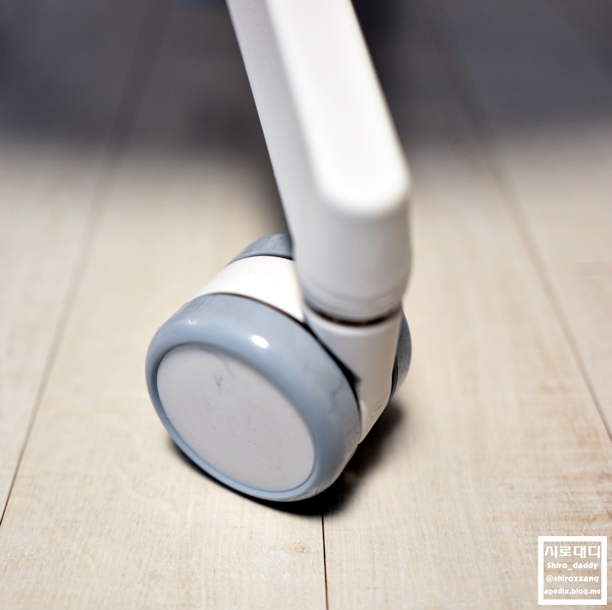 어떤 분들은 너무 바퀴가 잘 돌다보니 이 바퀴를 빼고 고정식으로 바꾸는 분들도 있다던데, 전 이전 의자가 영 안 구르는 바퀴였어서 지금이 좋네요^^;