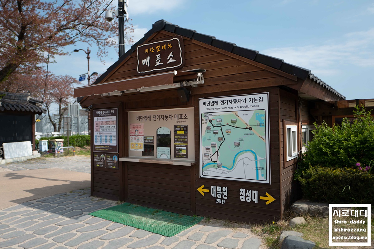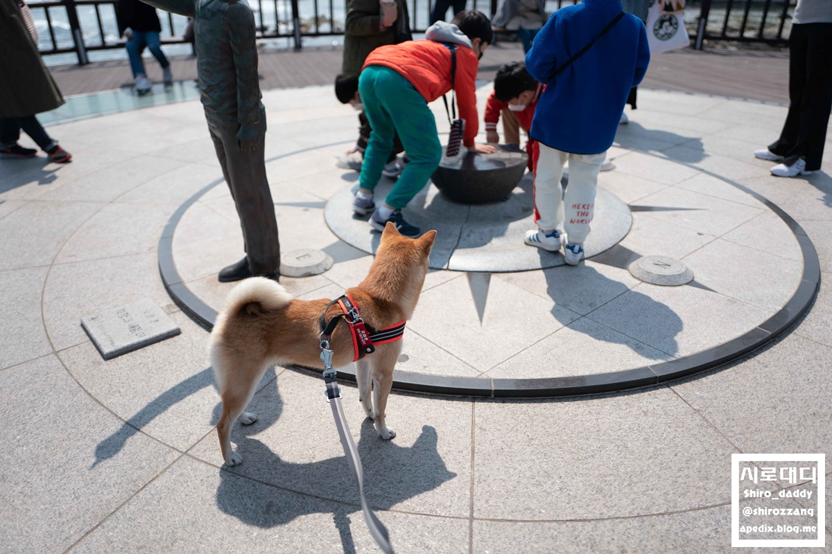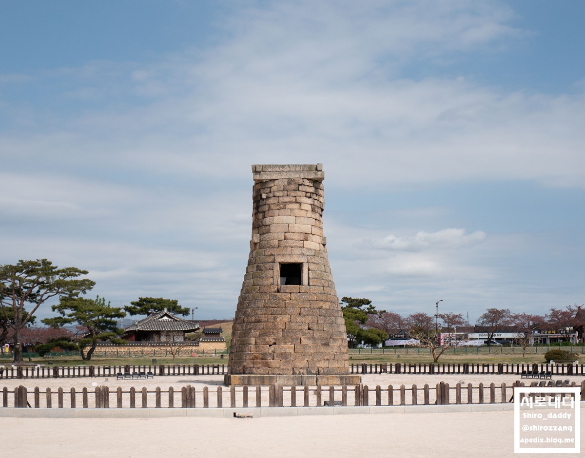 반려견은 출입금지라 밖에서 첨성대를 보고 있는 시로