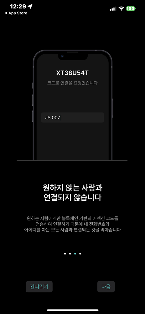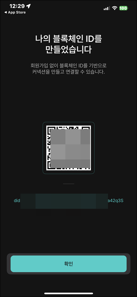이렇게 ID가 생성되면 해당 BlockChat 커넥션 코드를 대화하고자 하는 상대방에게 공유하여 상대방이 정해진 시간내에 수락하면 대화가 가능해 집니다.