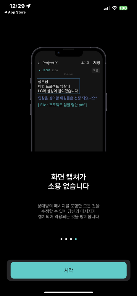 다른 메신져앱과 달리 서비스 제공 업체의 서버에 개인정보 및 대화내용이 저장되는 방식이 아닌 나와 대화 상대방의 로컬 휴대폰에만 정보가 저장되는 블록체인 방식의 메신저입니다.