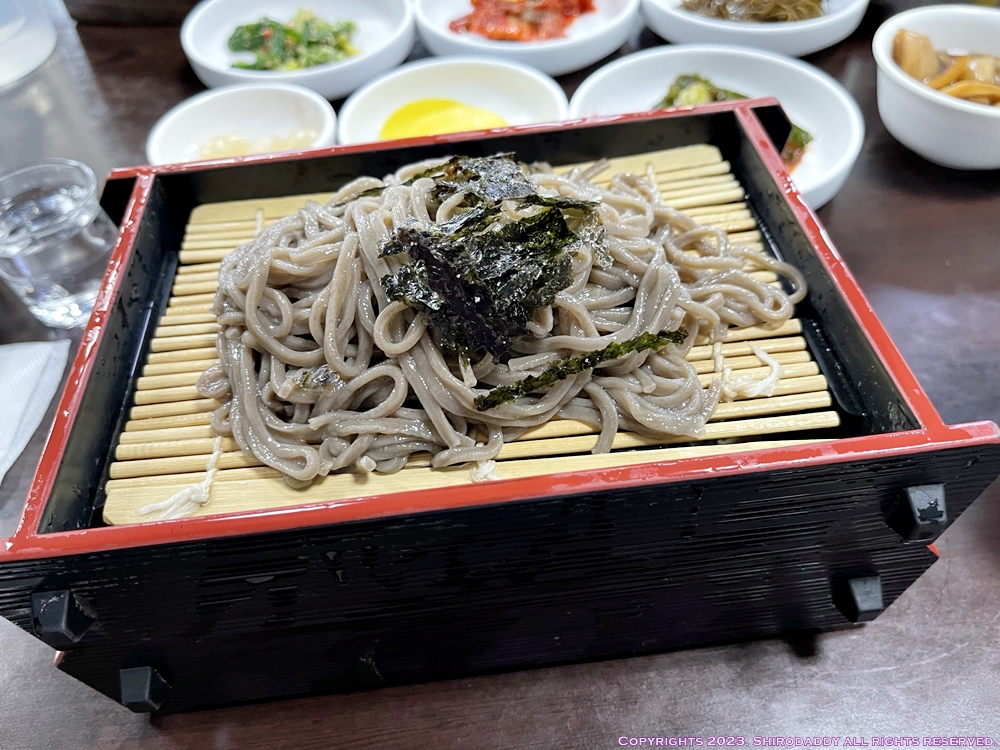 특이한 점은 골뱅이무침과 보통 소면이나 쫄면이 나오는데 이 곳은 메밀면을 준다는 점!