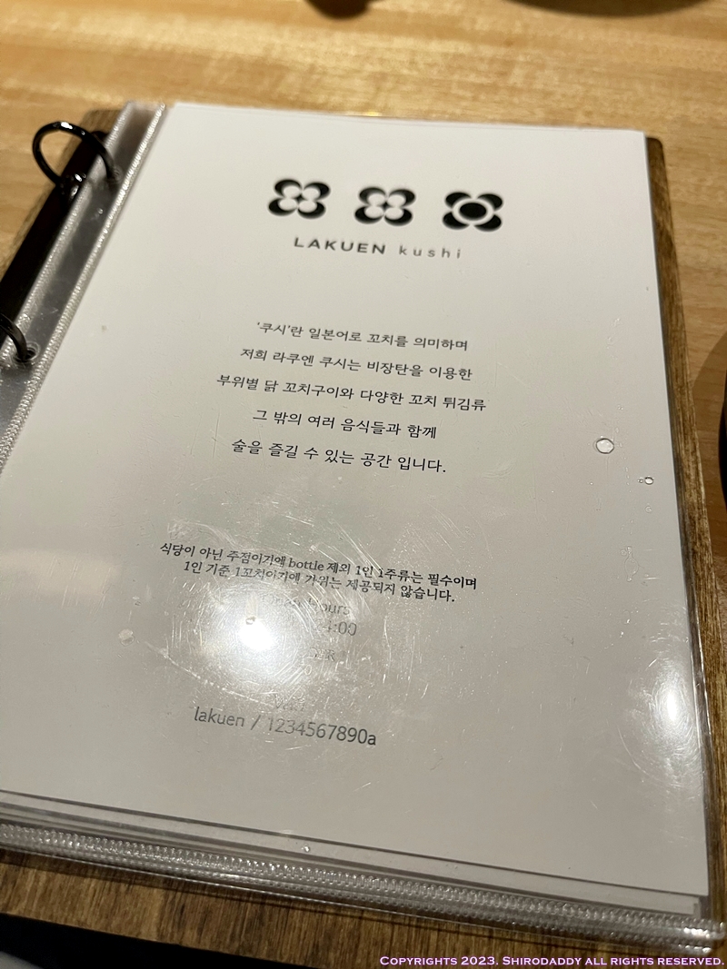 라쿠엔이라는 곳인데, 야키도리, 쿠시카츠 등과 그 밖의 일품 요리도 있는 일식집이에요.