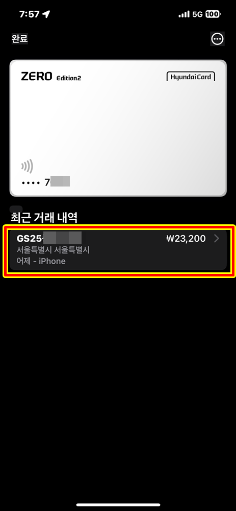 사용내역은 [최근 거래 내역]에서 바로 확인이 가능하네요.
