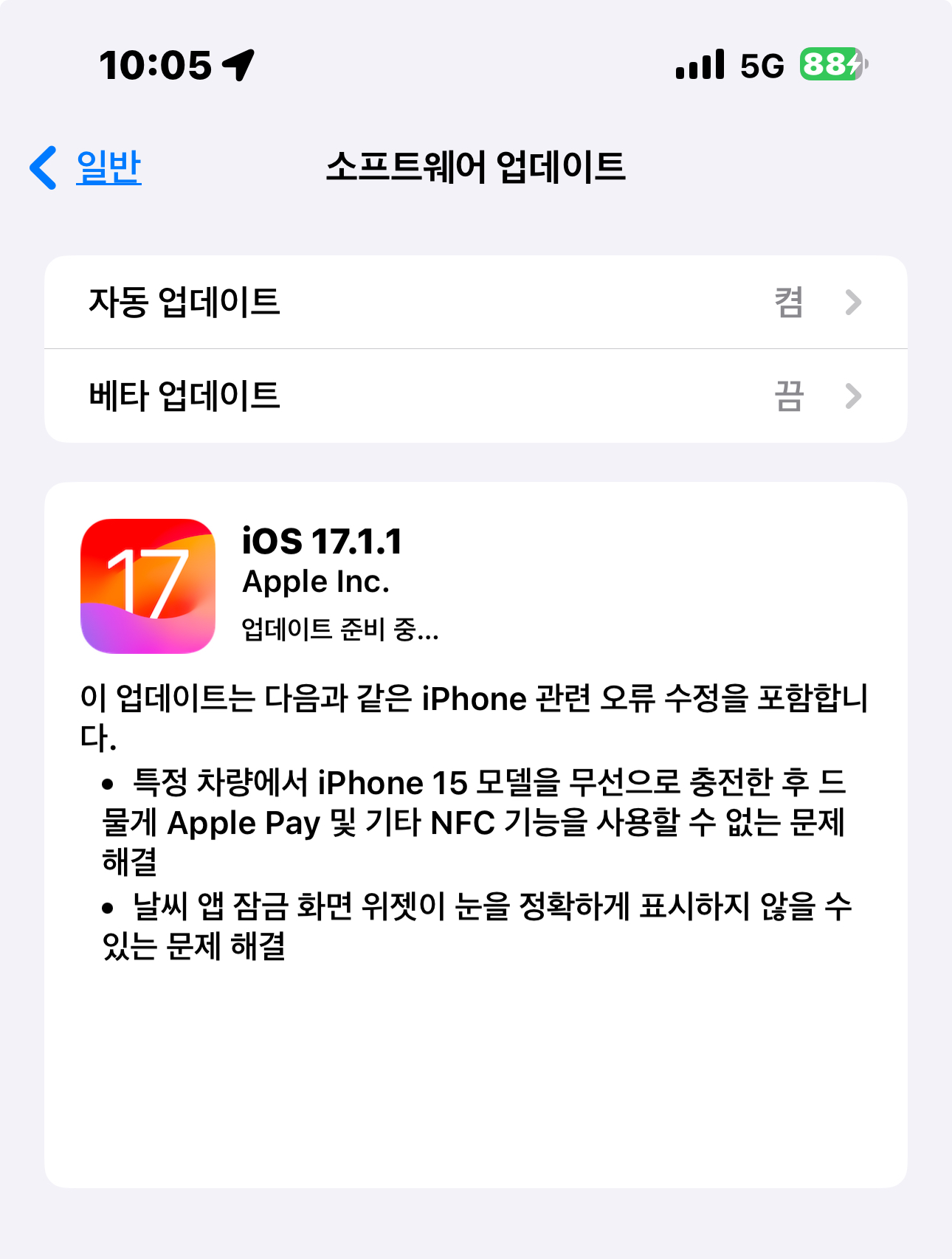 2023년 11월 8일 오늘 애플에서 빠르게 iOS 17.1.1 업데이트를 릴리즈했습니다.