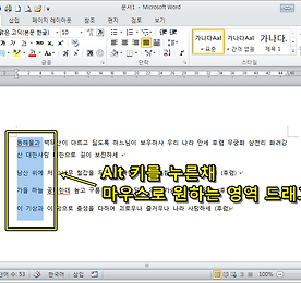 Computer Tips 썸네일형 리스트형 오피스2013을 터치모드로 사용하는 방법 오피스2013은 윈도우8에 최적화되어 출시된 버전입니다. 윈도우8은 데스크톱 및 테블릿에 최적화된 OS이구요. 테블릿과 데스크탑의 가장 큰 차이점 중의 하나는 바로 테블릿은 "터치"가 된다는 것이겠죠. 요즘엔 데스크탑에서 터치모니터를 사용하여 터치기능을 사용할 수 있긴 하지만 말이죠. 아무튼 그런 이유로 오피스 2013 버전에는 터치모드로 전환하는 메뉴가 들어가 있습니다. 지금부터 터치모드로 오피스2013을 사용할 수 있도록 설정하는 방법을 알려드리겠습니다. 위 그림처럼 터치/마우스 모드를 선택합니다. 그럼 상단에 메뉴가 나타나는데요. 클릭하여 [터치] 모드를 선택합니다. [마우스]모드는 우리가 흔히 사용하는 일반적인 모드를 말합니다. 그럼 손가락 또는 터치펜으로 터치하기 좋도록 메뉴간의 간격이 넓어집니.. 더보기 MS워드에서 컬럼모드로 복사하는 방법 간단한 MS워드 팁 한가지를 소개합니다. 바로 컬럼모드 복사인데요. 컬럼모드가 무엇인지 잘 모르는 분들을 위해 간단히 알려드리자면.. 일반적으로 마우스나 키보드의 방향키로 블럭을 잡는 경우 단어, 문장 등 행단위, 다시말해 위 캡춰이미지 처럼 가로 행을 기준으로 블럭을 잡을 수 있습니다. 하지만 지금 알려드리는 방법은 가로가 아닌 세로 기준, 행단위가 아닌 열단위의 블럭을 잡을 수 있도록 해 주는 방법입니다. 키보드의 alt 키를 누른채 마우스로 원하는 영역을 드래그하면 위와 같이 열단위의 블럭잡기가 가능합니다. 물론 블럭을 잡은 후 복사 또는 잘라내기도 할 수 있습니다. 블럭 잡은 부분을 복사한 후 붙여넣은 모습입니다. 블럭이 잡혔던 부분만 잘 복사가 된 것을 확인할 수 있습니다. 사실 위 예시는 별로.. 더보기 윈도우7 기본 계산기 프로그램에 이런 다양한 기능들이? 윈도우에는 계산기 프로그램이 기본 설치되어 있습니다. 그중에서도 윈도우7 계산기 프로그램에는 생각치못했던 다양한 숨은 기능들이 있는데요. 지금부터 윈도우7에 기본 설치되어 있는 계산기 프로그램의 다양한 숨은 기능들을 알아보겠습니다. 참고로 계산기 프로그램은 시작 > 모든 프로그램 > 보조프로그램으로 들어가면 찾을 수 있습니다. 기본 계산기 공학용 계산기 프로그래머용 계산기 통계용 계산기 단위변환 계산기 날짜계산 계산기 주택담보대출 계산기 자동차 임대 계산기 연비계산 계산기 (단위: 마일) 연비계산 계산기 (단위: km) 이렇게 다양한 계산기의 기능들이 있는지 몰랐던 분들도 많을 것으로 생각됩니다. 그럼 이 다양한 기능들은 어떻게 이용하는 걸까요? 일반용, 공학용, 프로그래머용, 통계용 계산기 실행은 [보.. 더보기 이전 1 다음