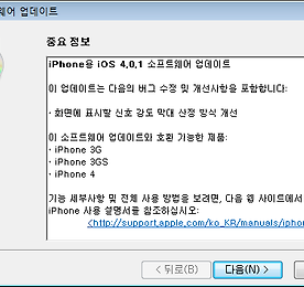 아이튠즈를 통한 아이폰 펌웨어 업데이트 지금 가능합니다-현재 아이폰 4.0.1 업데이트중